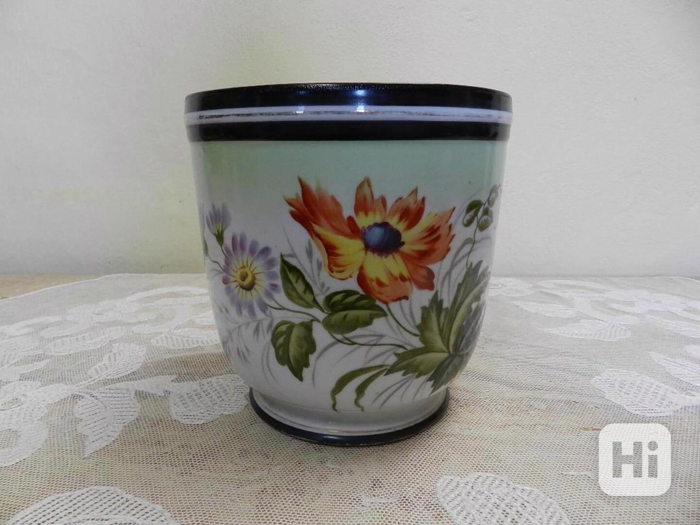 Hezký ručně malovaný Květináč, Květiny - značení jsem nenašel, pravděpodobně Čechy, konec 19 stol.