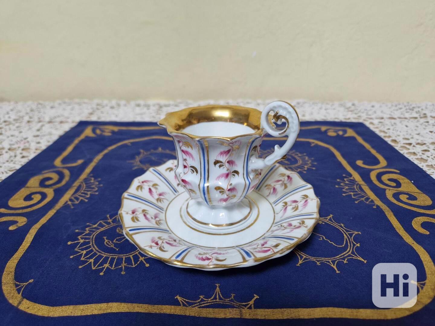 Krásný ručně malovaný a zlacený Hrnek s podšálkem - Značeno na obou kusech vtlačenou značkou NGF, Kysibl, 1 pol. 19 stol.