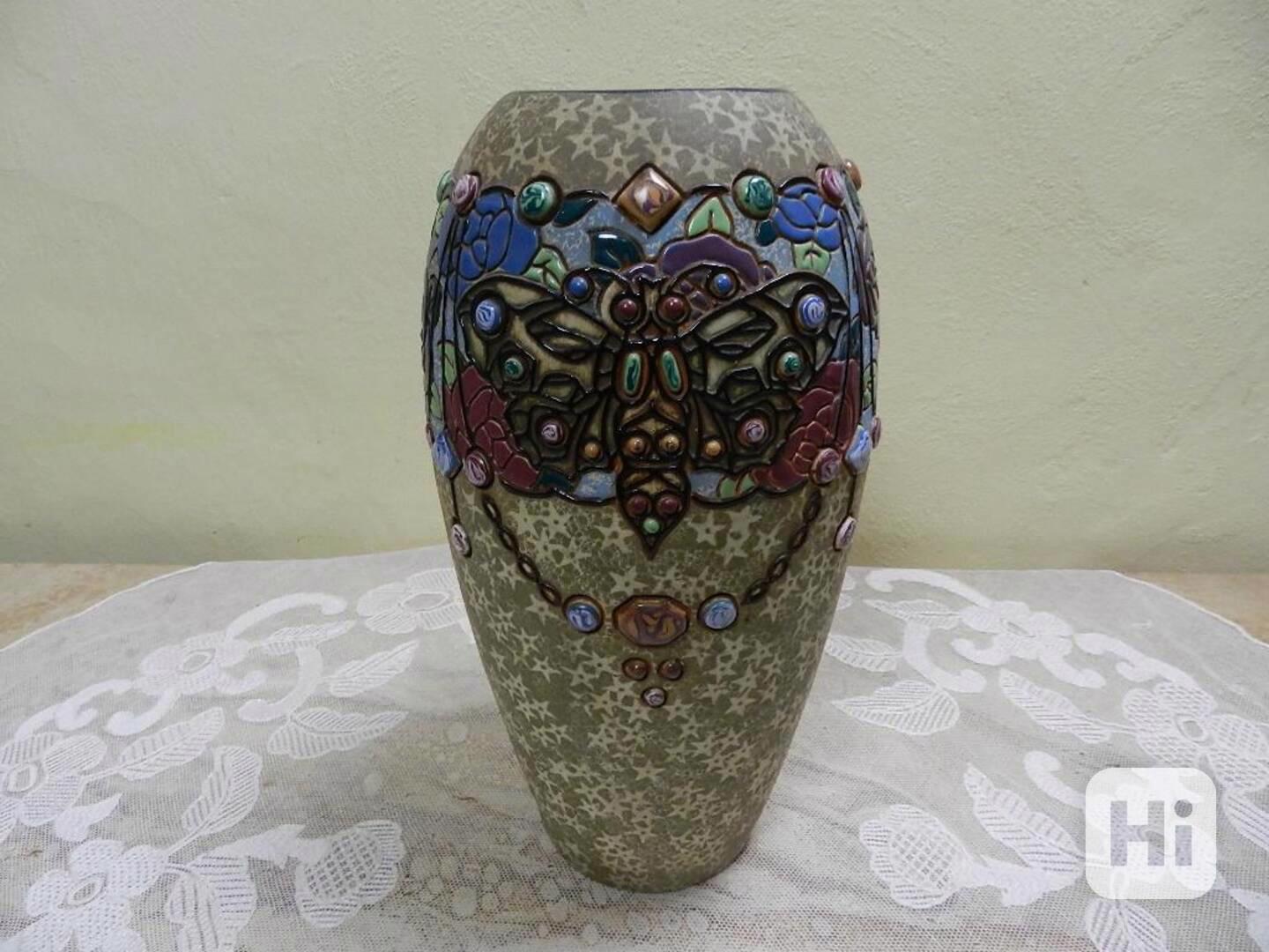 Nevídaná bohatě zdobená velká Váza, plastický reliéf, imitace kabošonů - Imperial Amphora Teplice, kolem 1918-1919.