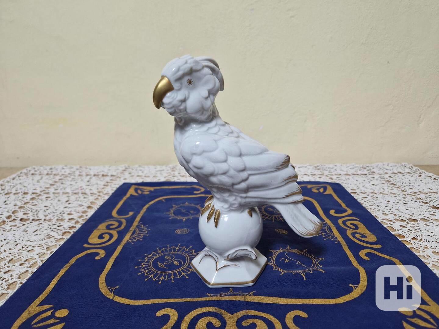 Krásná zlacená porcelánová plastika Papouška - Horní Slavkov, 30 léta 20 stol.