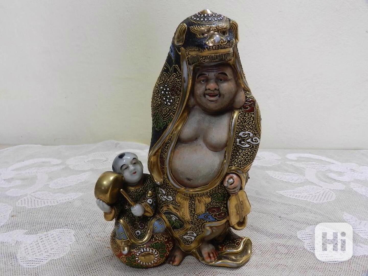 Luxusní Japonská bohatě zdobená soška Bůh Bůžek Satsuma