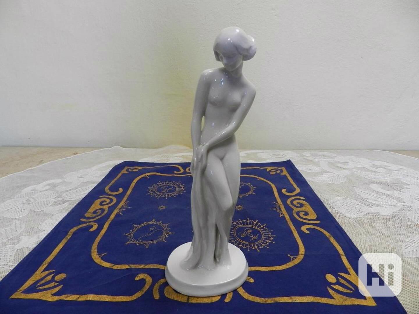 Dívčí akt, Po koupeli, barva bílá - Horní Slavkov, 1 pol. 20 stol.Rozměry: výška 25cm.