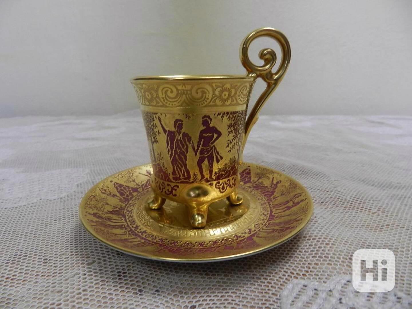 Empírový bohatě zlacený Hrnek na nožičkách vínový Karlsbad