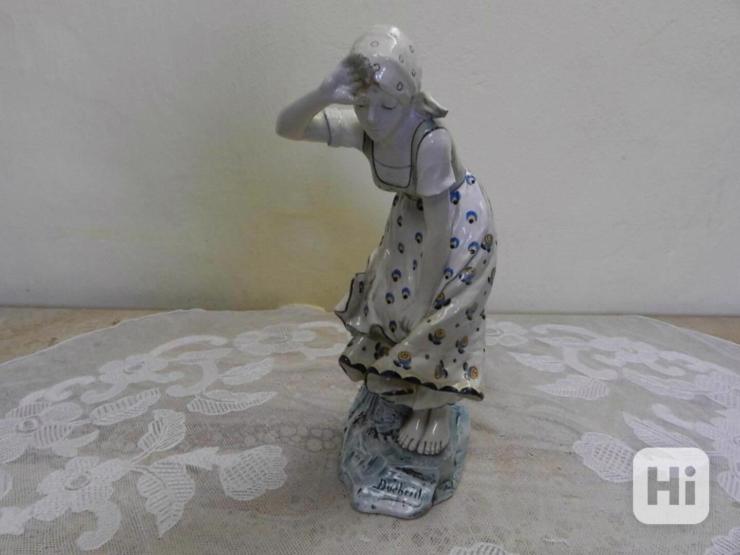 Krásná keramická ručně malovaná glazovaná Soška, Žena - značeno a signováno, A. Doebrich, Ernst Wahliss Turn Wien Austria, kolem 1900.
