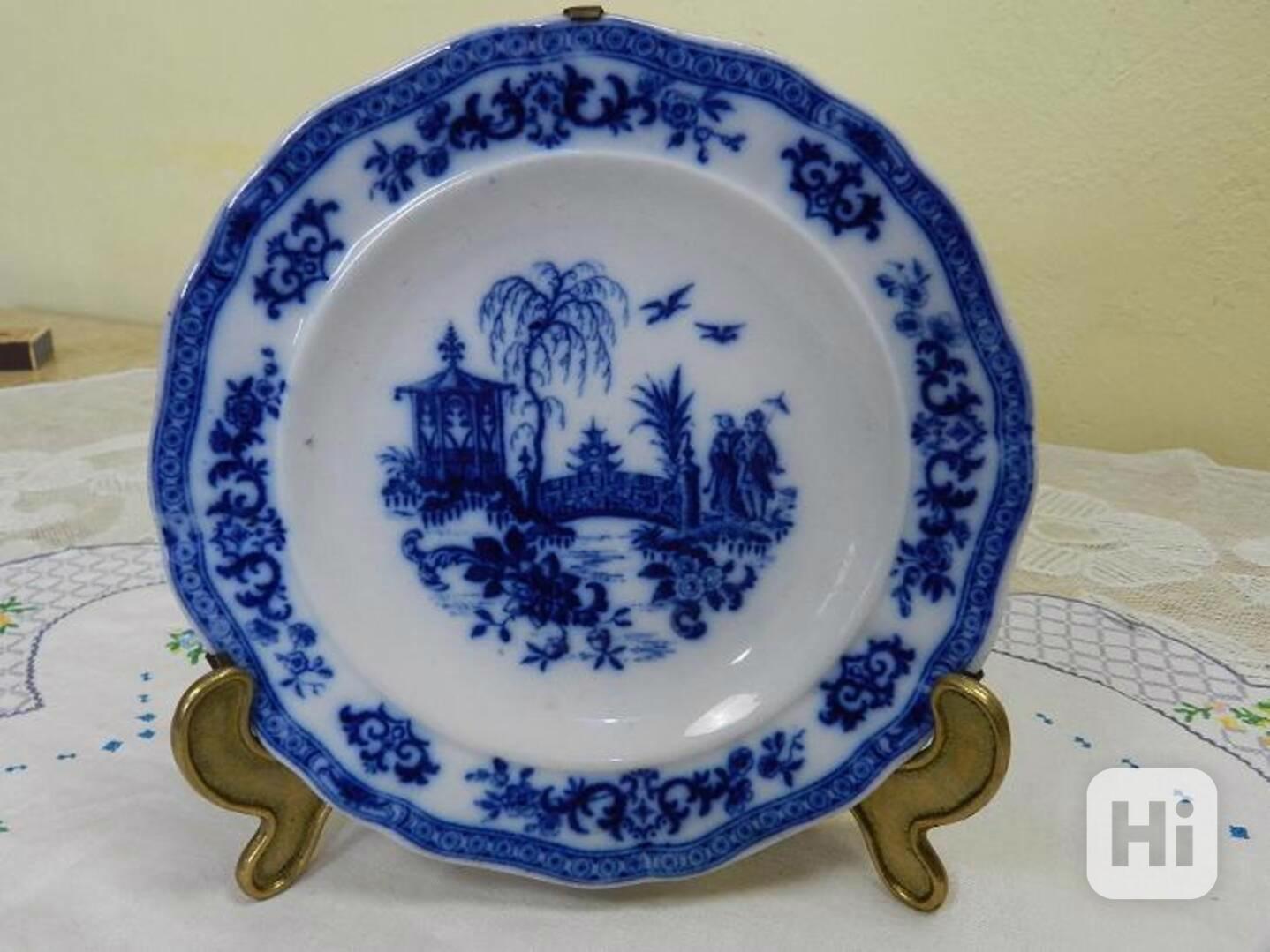 Hezký vzácný kobaltový Talíř s čínskými motivy - Slavkov, staré Rakousko, dvojí značení, kolem 1900.Rozměry: průměr 19cm, hmotnost 330g.