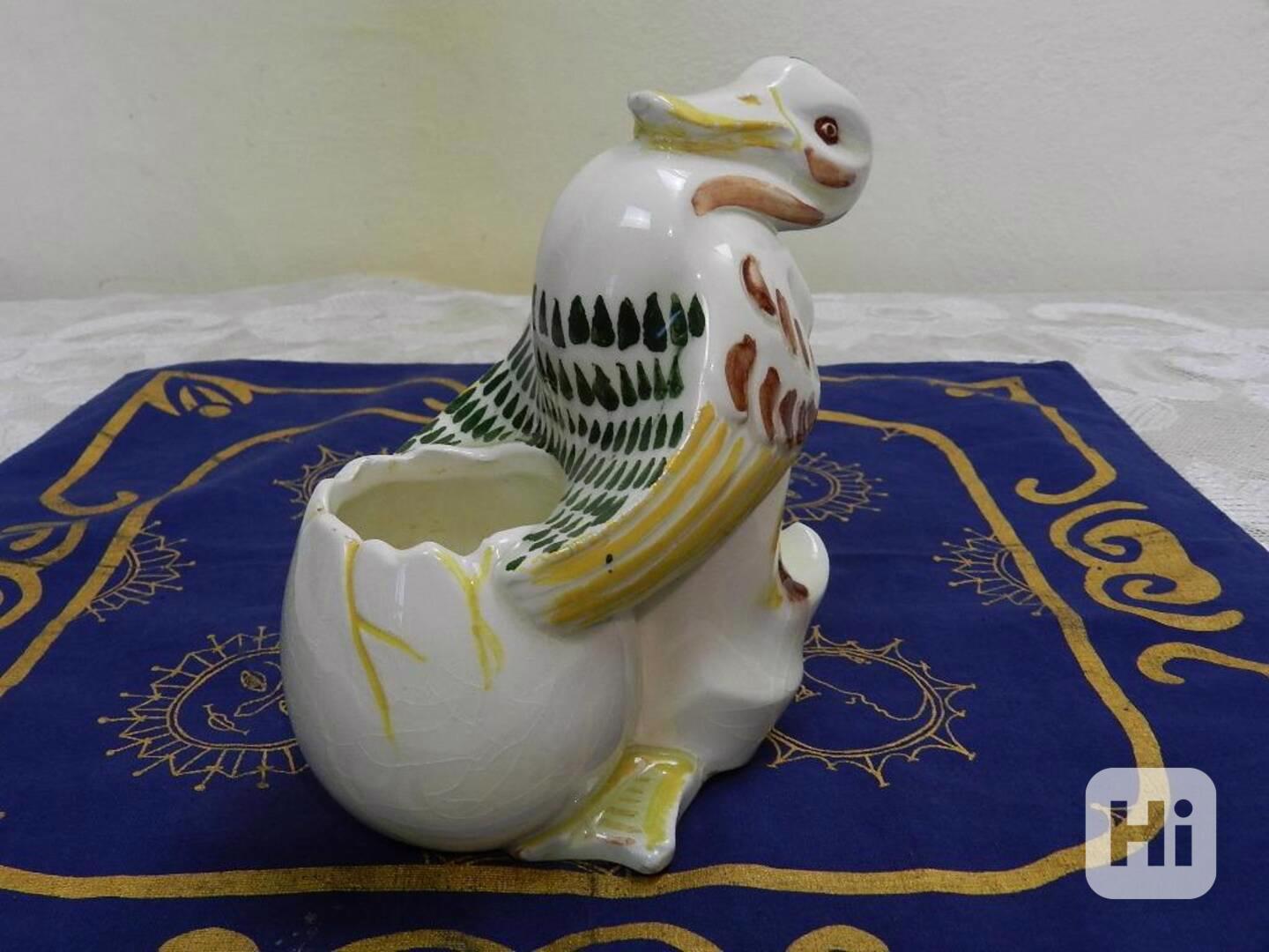 Zajímavá Art Deco ručně malovaná keramická soška Kačera - Ditmar Urbach, značeno číslem a Czechoslovakia, 1 pol. 20 stol.