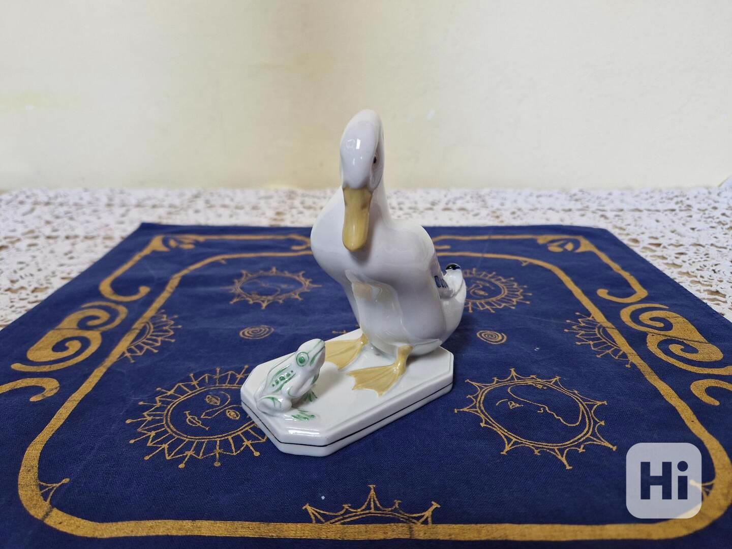 Hezká porcelánová plastika, Kachna s žábou - Horní Slavkov, 1 pol. 20 stol.