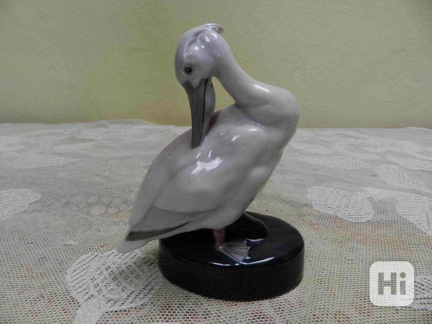 Hezká porcelánová plastika pták Pelikán Eichwald Dubí