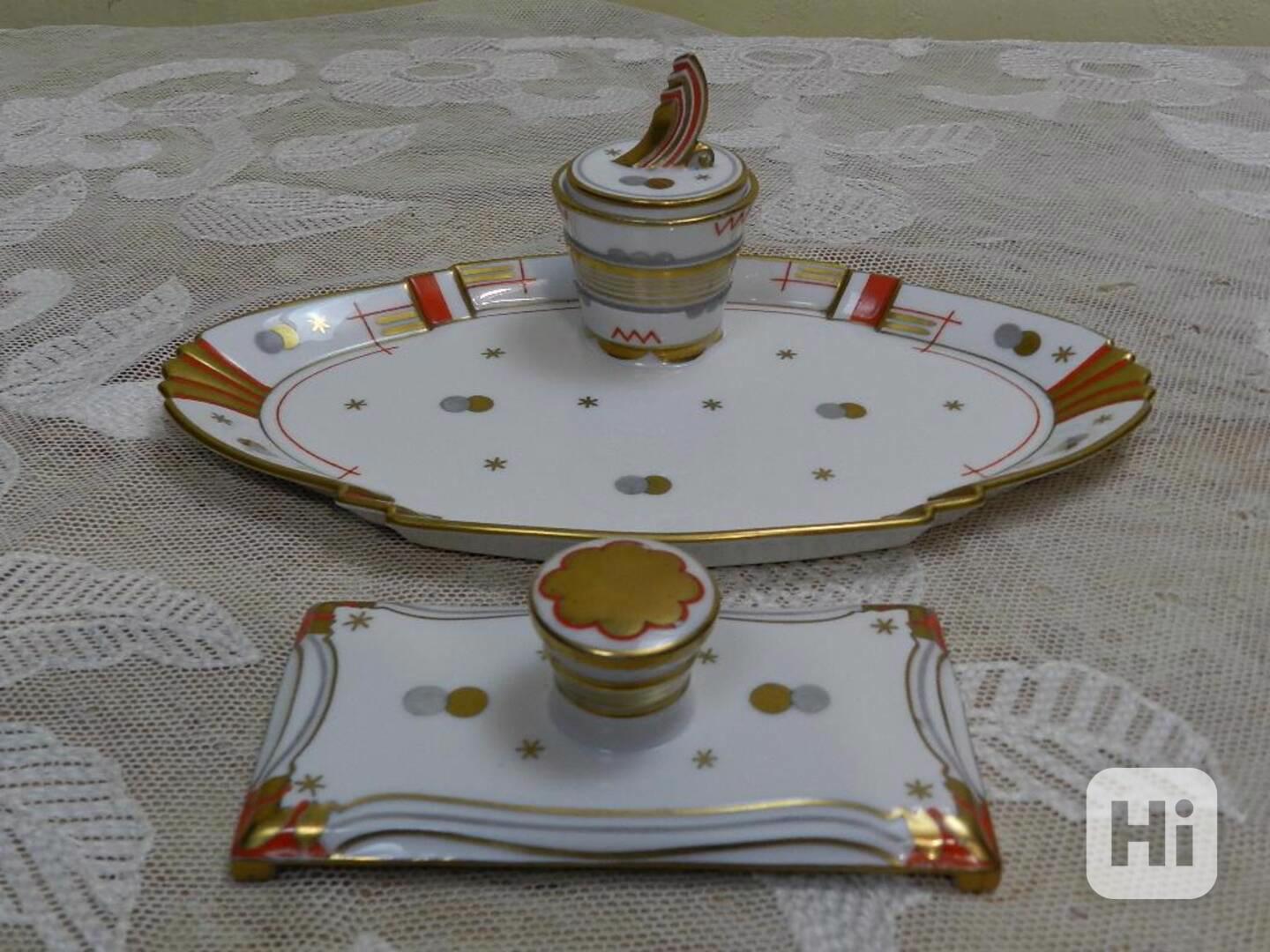 Luxusní Art Deco porcelánový Kalamář, bohaté zlacení, ruční malba - Horní Slavkov, jubilejní značka 1932.